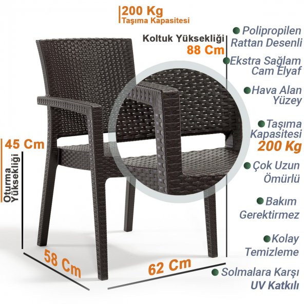 2 ADA Rattan Koltuk Bahçe Mutfak Bahçe Sandalyesi