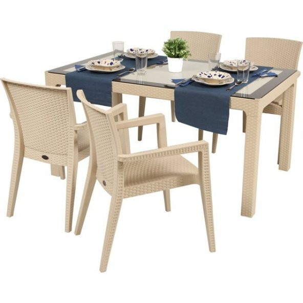 DOGANT 4 Sandalye 90x90 Camlı Masa Rattan Takım Cappicino