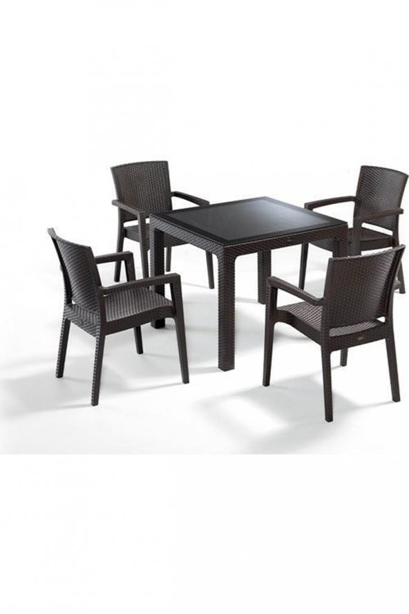 Yeni Cappiccino 70X120 Ratan Camlı Masa 4 Sandalye Takımı