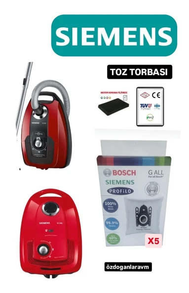 Siemens Süpürgesi Toz Torbası 5 Adet Motor Filitreli