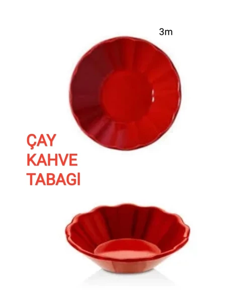 3m Kırmızı 12 Adet Kıratane Kahve Çay Tabağı