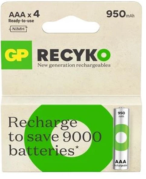 GP AAA 800 mAh Şarjlı İnce Kalem Pil 4'lü Paket Recyko