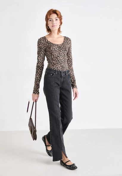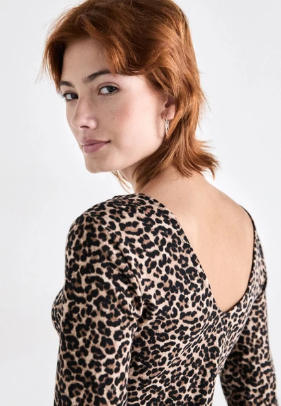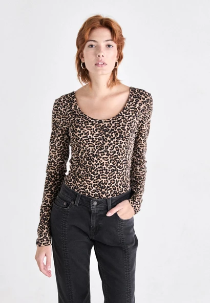 Only 15361325 Genis Yaka Leopar Desenli Kadin Body - Leopar