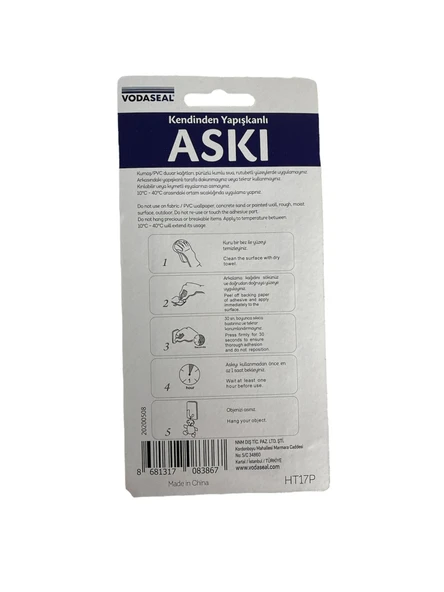 İZ BIRAKMAYAN SÖKÜLEBİLİR ASKI BEYAZ KÜÇÜK VODASEAL