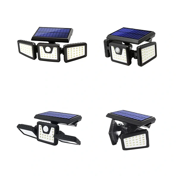 6 VOLT -3 WATT SOLAR PANELLİ 4 BAŞLI HAREKET SENSÖRLÜ 200 SMD LEDLİ LAMBA (5047)