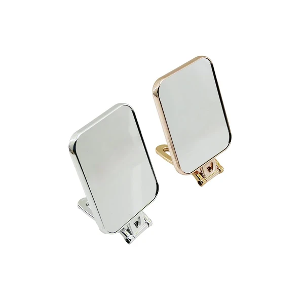 DİKDÖRTGEN 15X11.5CM MAKYAJ AYNASI ÇİFT TARAFLI BRONZ - GÜMÜŞ PLS.ÇERÇEVE KATLANIR AYAKLI (5047)