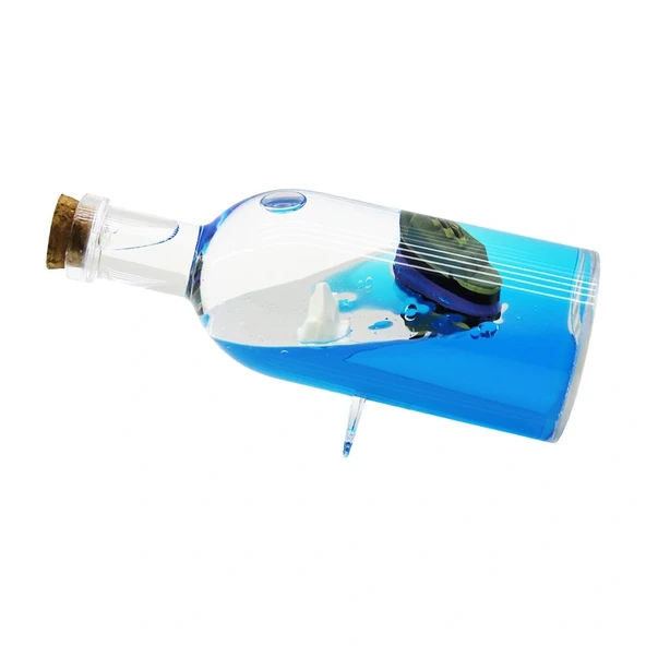 MAVİ SU - ADALI YUVARLAK MİKA ŞİŞE=YAN DURUŞ AYAKLI YÜZEN BATMAYAN GEMİ DEKORATİF BİBLO AKVARYUM 6X16CM (5047)