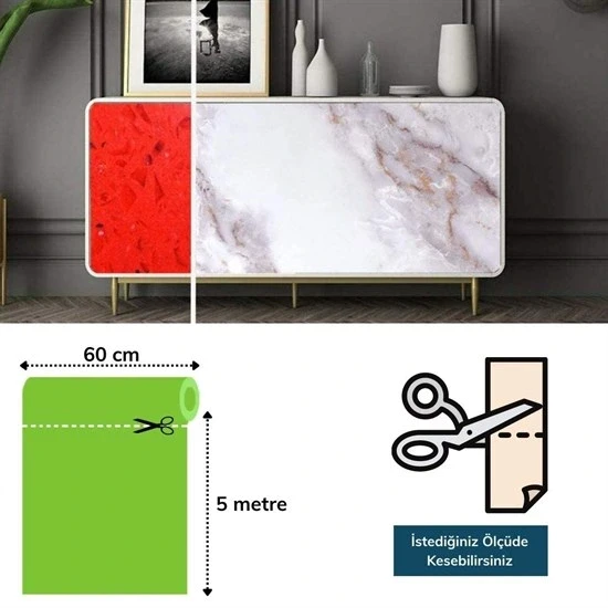 Mermer Desenli Masa Tezgah Mutfak Su Geçirmez Yapışkanlı Folyo Sticker Bej 5x0,6m (5047)