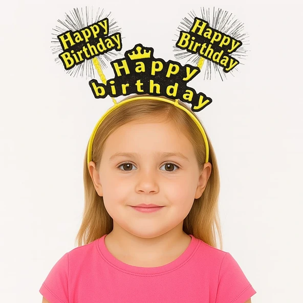 Doğum Günü Kutlaması İçin Sarı Taç - Işıltılı Yazılı Parti Tacı (5047)