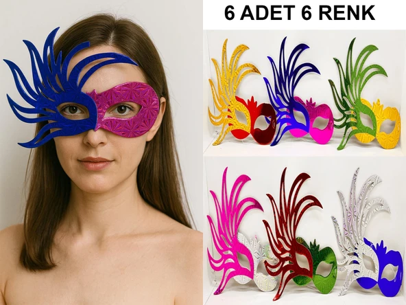 6'lı Renkli Balo Maskesi Seti | Karton & Lastikli (Yetişkin-Çocuk Uyumlu) (5047)