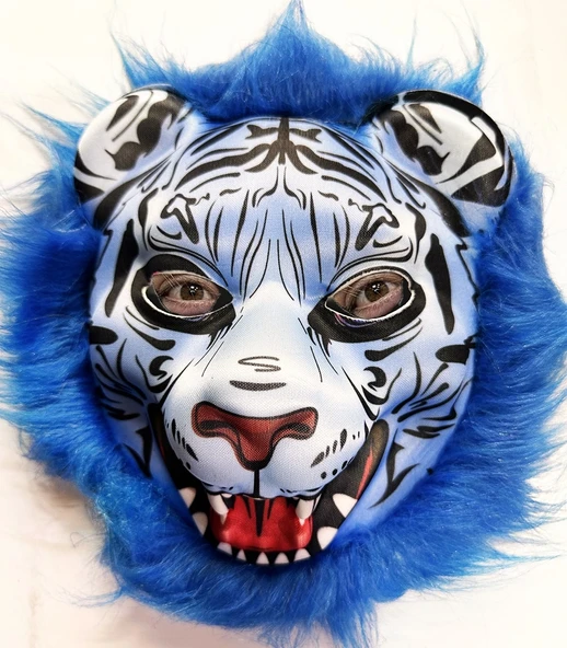 Mavi Saçlı Kaplan Maskesi Kurt Maskesi Mega Peluş 27 No (5047)