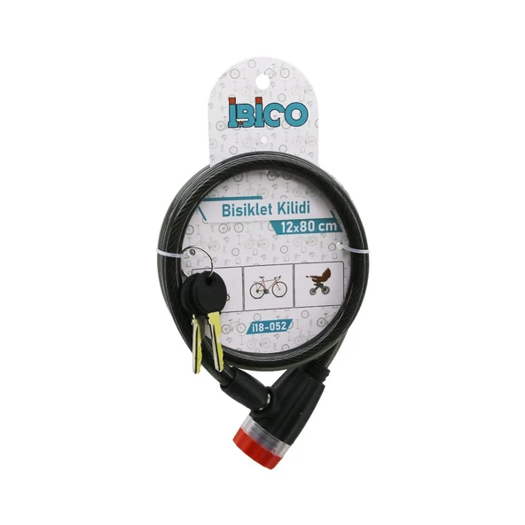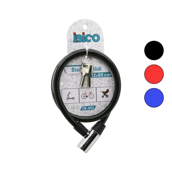 ANAHTARLI AÇ-KAPA KİLİT KAPAKLI PLASTİK KAFA BİSİKLET KİLİT ÇELİK TEL RENKLİ KILIF 12MMX80CM (5047)