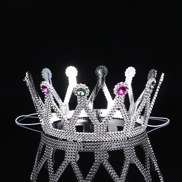 Gümüş Renk Çocuk Ve Yetişkin Uyumlu Kraliçe Tacı Prenses Tacı 8x25 Cm