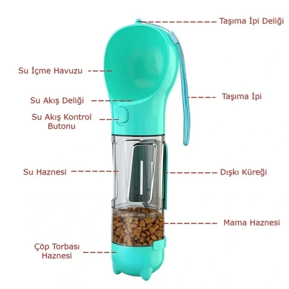 Taşınabilir Hazneli Mama Kaplı ,Kaka Poşetli Kedi,Köpek Suluğu-300ml (5047)