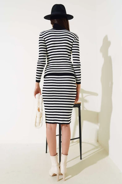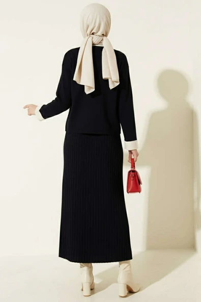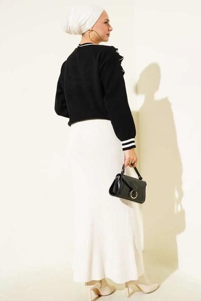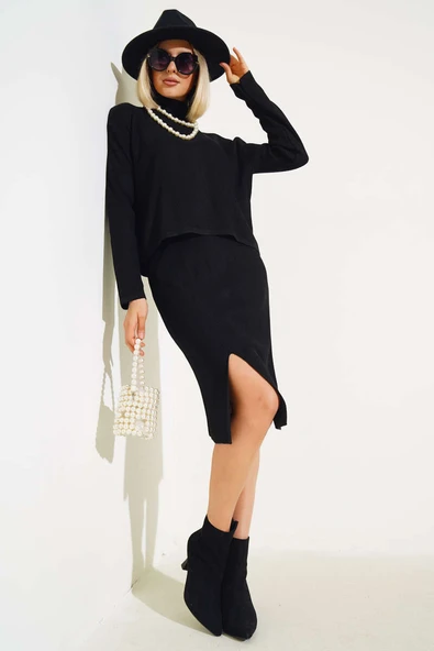 Balıkçı Yaka Midi Etekli Triko Takım Siyah