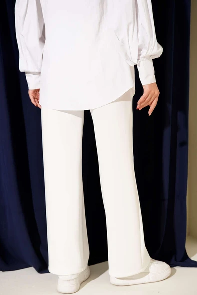 Scuba Çımalı Bol Paçalı Pantolon Beyaz