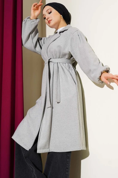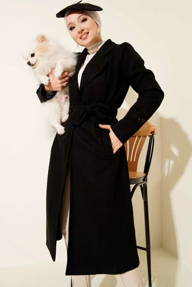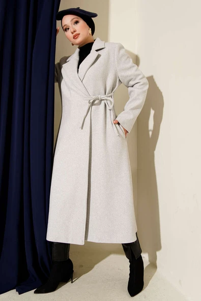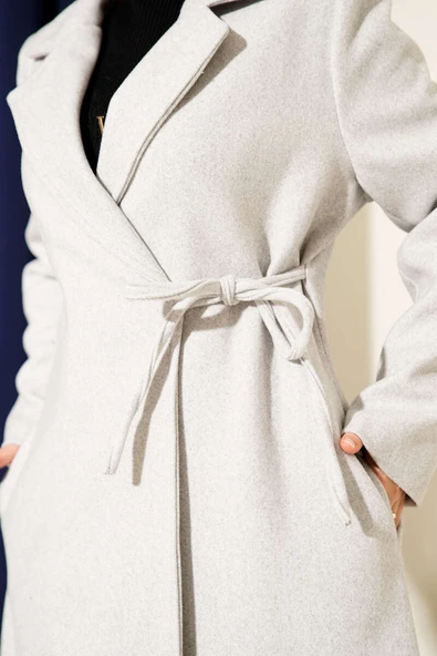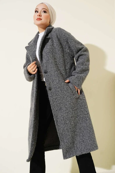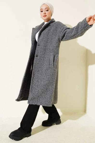 Kruvaze Yaka Düğme Detaylı Kaşe Kaban Füme