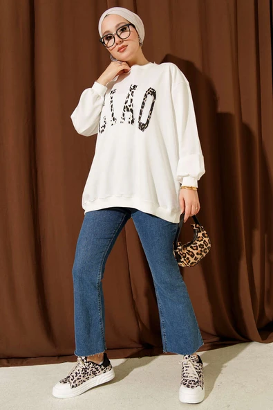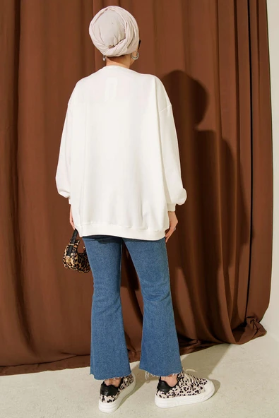 Nakışlı Ve Taşlı Sweatshirt Ekru