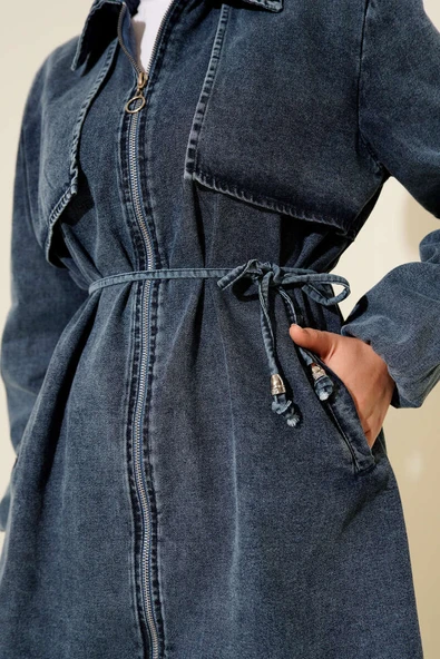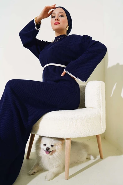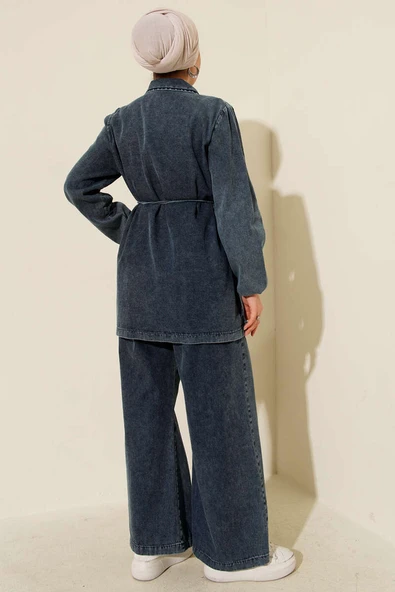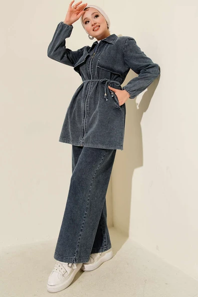 Yaka Pelerinli Fermuarlı İkili Takım Koyu Mavi