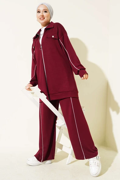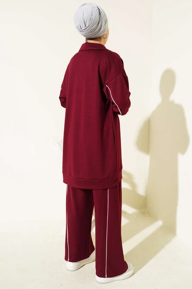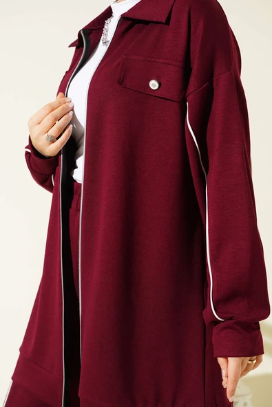 Gömlek Yaka Sahte Cepli Loyşa İkili Takım Bordo