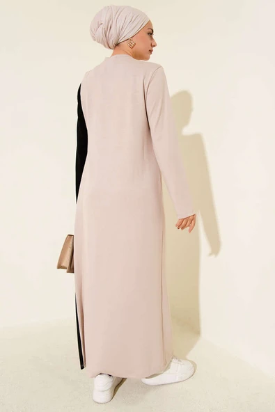 Yırtmaçlı Fitilli Triko Midi Elbise Bej