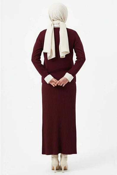 Balıkçı Yaka Midi Etekli Triko Takım Büsküvi