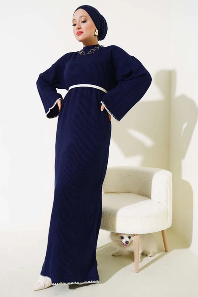 Gold Aksesuarlı Abiye Elbise Lacivert