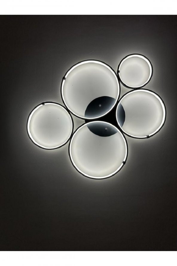 Bergama / 90x80 cm / Plafonyer Avize / 5 Çember / 3 Renk Işık / Antrasit Gövde