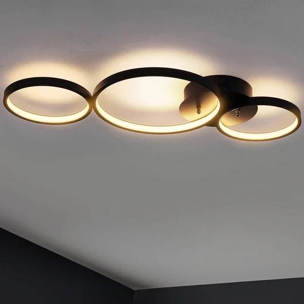 Troya / Plafonyer Avize / 70x25 cm / Antrasit Gövde / 3 Renk Yanar / 3 Renk Işık