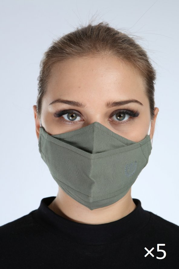 Pianoluce Yıkanabilir 3 Katlı Pamuklu 5 lı Maske Haki P10012