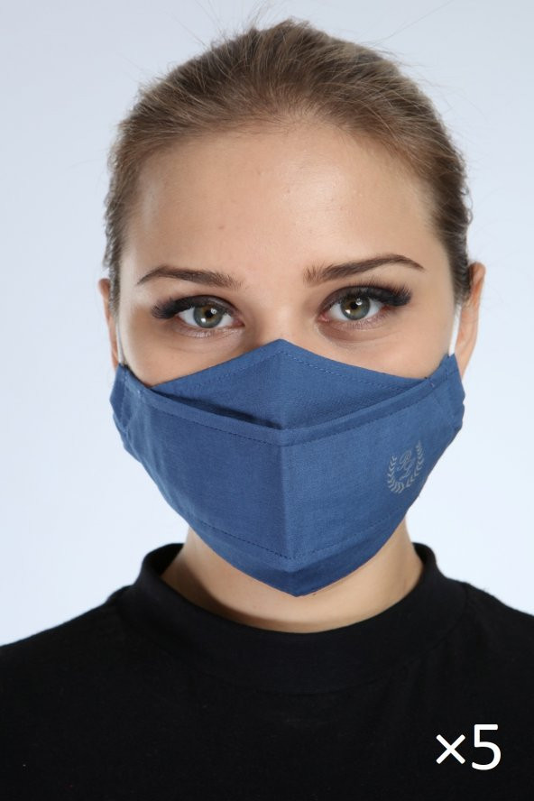 Pianoluce Yıkanabilir 3 Katlı Pamuklu 5 lı Maske İndigo P10012