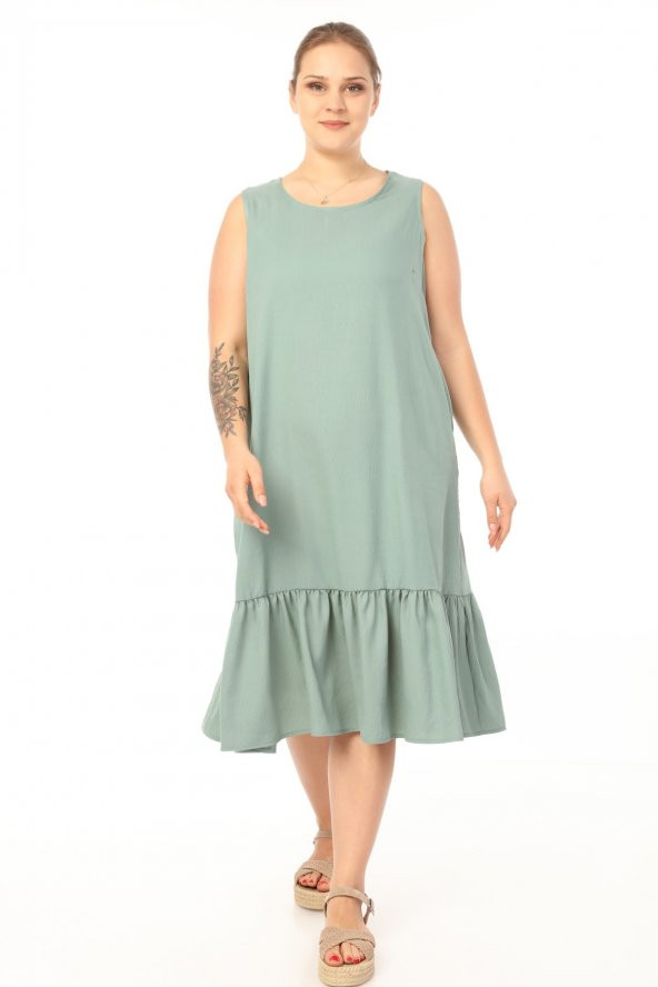 Schık Kadın Büyük Beden Kolsuz Elbise Yeşil SCKWM21EL01