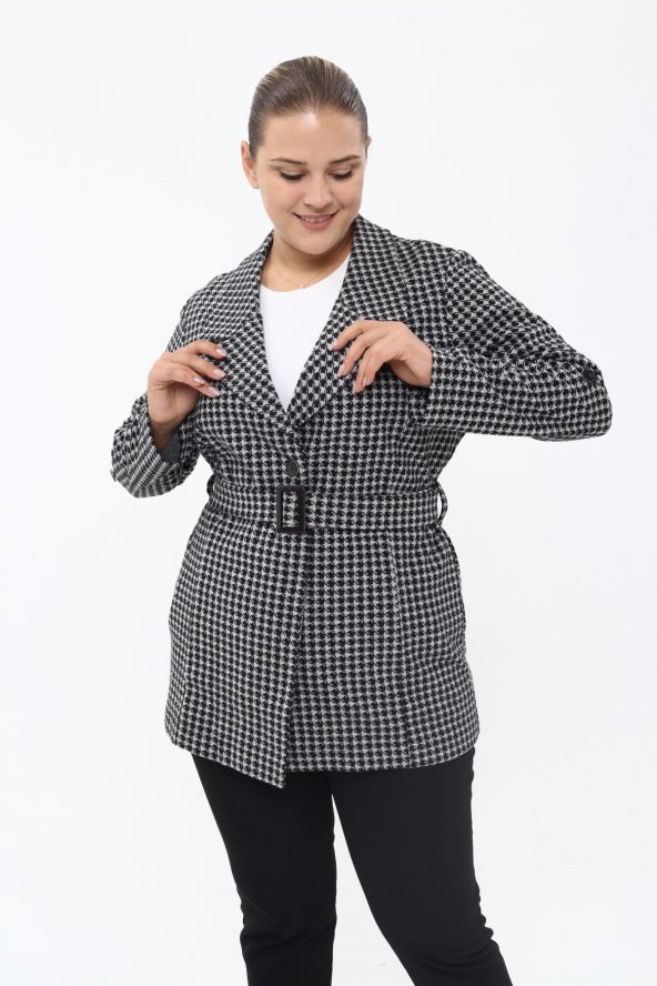 Pianoluce Kadın Büyük Beden Cepli Kemerli Ceket Siyah PLWM23CKT02