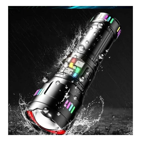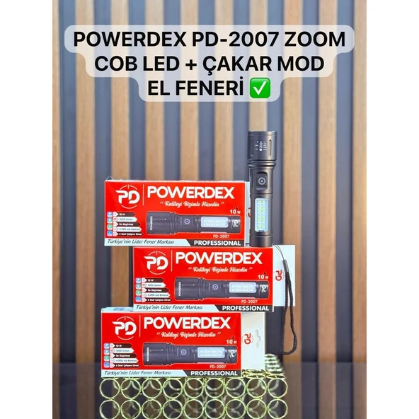 Powerdex PD-2007 Şarjlı El Feneri | 10W Led, 1000 Lümen, Zoom, Cob Yan Işık + Çakar Mod, Suya Dayanıklı