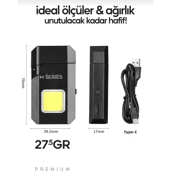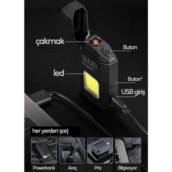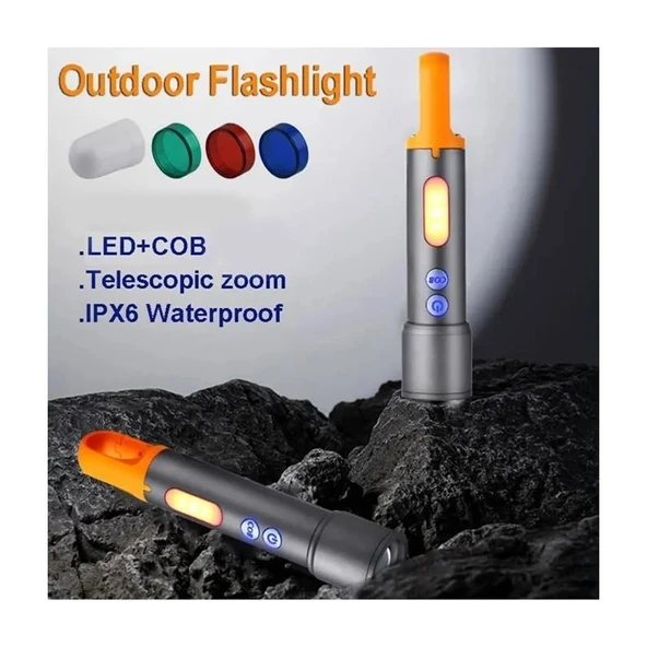 Kamptek Kamp Teknolojisi Şarjlı Yüksek Parlak ve Enerji Tasarruflu Cob LED Lamba Rüzgar Geçirmez Çakmaklı Fener Kamp Çakmağı