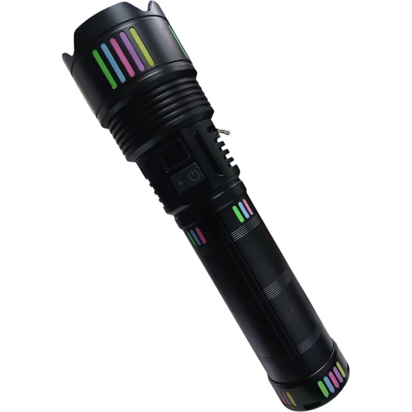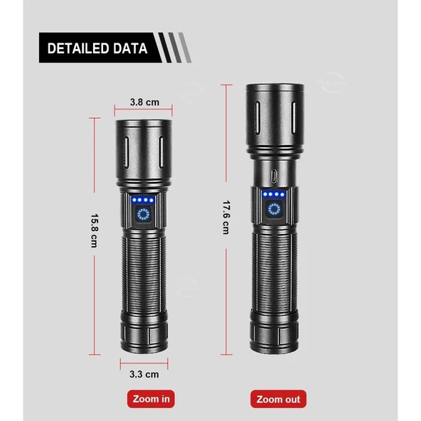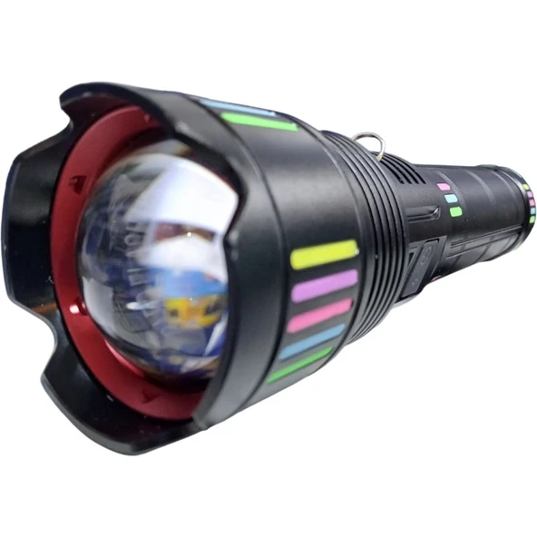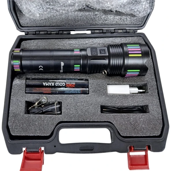 Gold Kama Gk-63 Şarjlı LED El Feneri | 150W Güç – 15.000 Lümen – 27.200 Mah Batarya – 5 Işık Modu, Zoom ve Lazer Özellikli