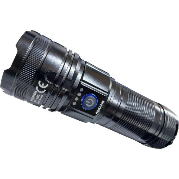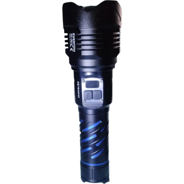 Everton RT-397 Profesyonel El Feneri | 50W – 5000 Lümen – 4800 Mah – 5 Mod – Type-C – Zoomlu – Dijital Göstergeli
