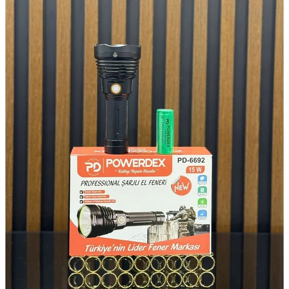 Powerdex PD-6692 15 Watt 1000 Lümen Profesyonel Şarjlı El Feneri
