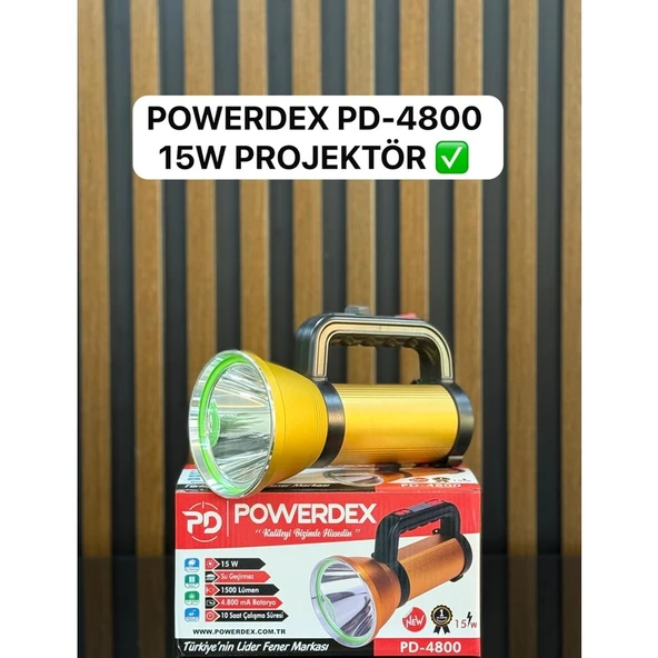 Powerdex PD-4800 | 15W Güçlü Şarjlı Projektör – 1500 Lümen – 4800 Mah – 10 Saat Kullanım – Suya Dayanıklı