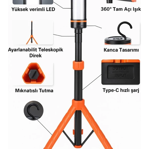 Wison WS-623 Çok Amaçlı Ayaklı Döner Başlıklı Tripod Aydınlatma | 3500 Lümen – 5 Mod – Powerbank – Su Geçirmez