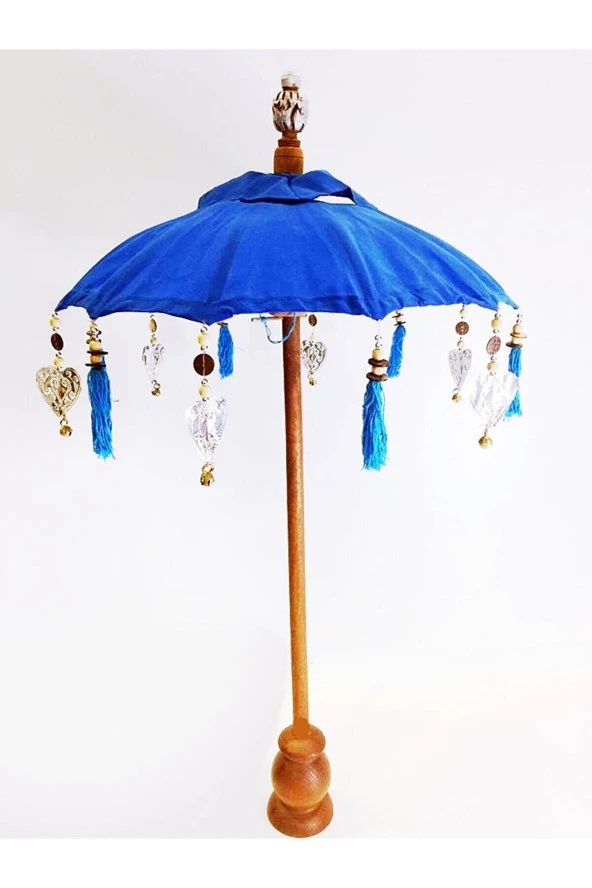 Prodiva Ahşap Ayaklı Dekoratif Bali Şemsiyesi 80 cm- Mavi