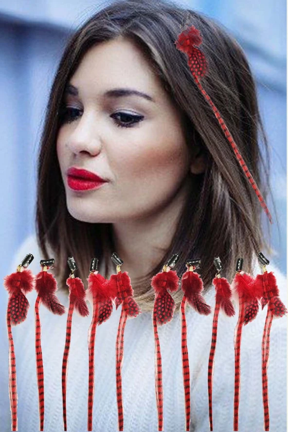 Prodiva Saç Aksesuar Klipsli Sentetik Sülün Tüyü Kırmızı – 10 Adet/Paket