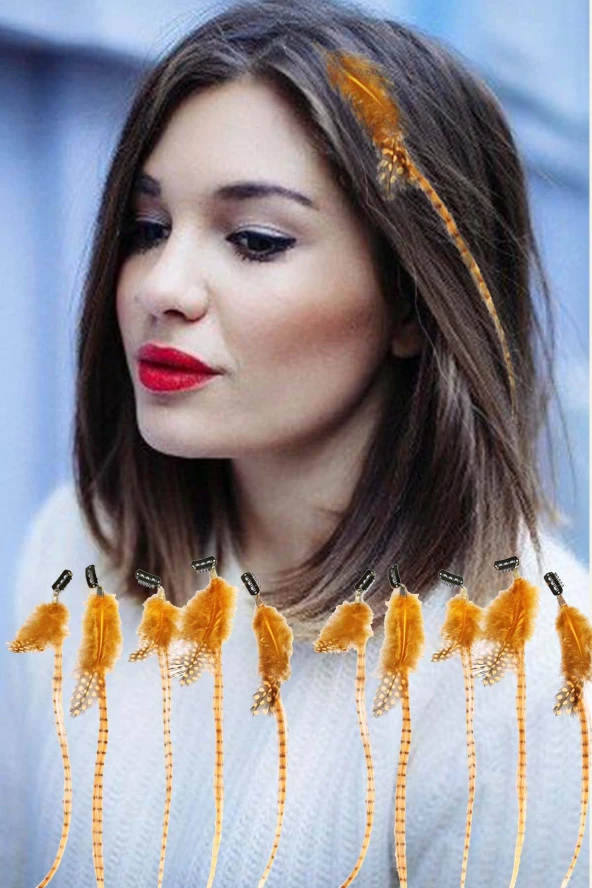 Prodiva Saç Aksesuar Klipsli Sentetik Sülün Tüyü Turuncu – 10 Adet/Paket