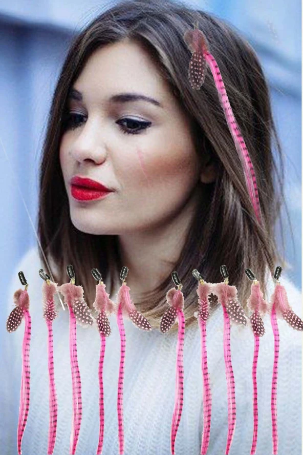 Prodiva Saç Aksesuar Klipsli Sentetik Sülün Tüyü Koyu Pembe – 10 Adet/Paket