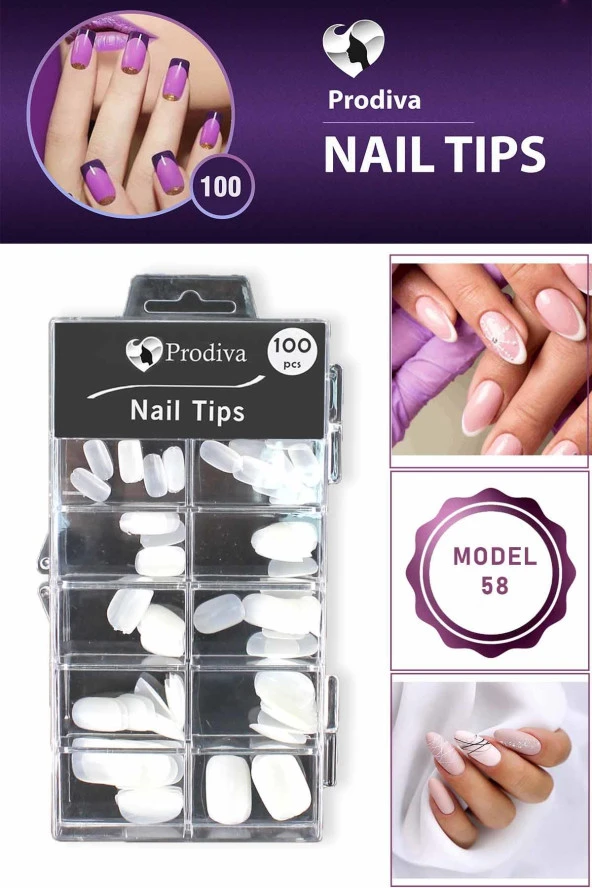 Prodiva 100'lü Kutulu Takma Tırnak - Nail Tips 58 No