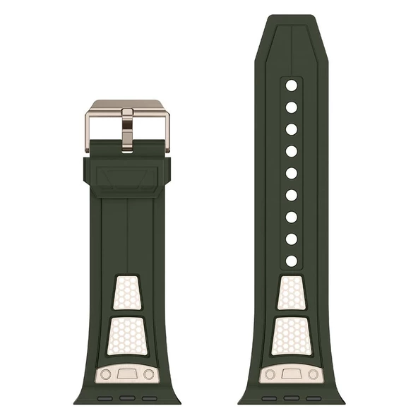 Apple Watch 10 Serisi 46mm Redclick KRD-117 Terletmeyen Delikli Metal Süs Desenli Silikon Kordon