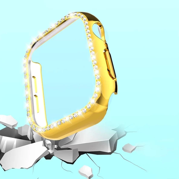 Apple Watch 7 45mm Redclick Watch Gard 24 Kenarları Taşlı Sert PC Kasa Ve Ekran Koruyucu