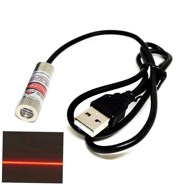 Usb Kablolu 5mW 650nm Kırmızı Çizgi Lazer Modül 1 Metre Kablo Lens ile Odak Ayarlı 12mm Çap İşaretleyici Gösterge