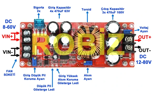 1200W Voltaj Yükseltici Modül 83V 12A Akım Voltaj Ayarlanabilir Led Sürücü Dc Çevirici Regülatör Güç Kaynağı Step Up Boost