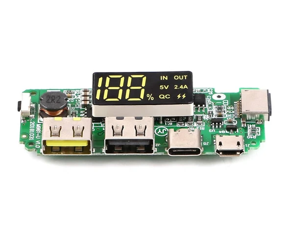 Powerbank Devresi Ekranlı 5V 2.4A Dual Usb Çıkış Type C Micro Usb Giriş Lityum Lion 18650 Pil Şarj Mobil Taşınabilir Güç Kaynağı Batarya Telefon